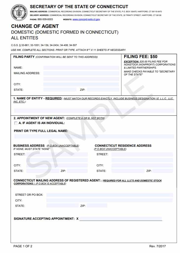 For your LLC in Connecticut, you will be required to elect your registered agent when you complete your LLC’s Certificate of Organization.