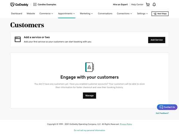 Another option on the GoDaddy builder is the appointment scheduling system. It saves you time by allowing potential customers to book with you online. Helpfully, this system informs both of you when a booking is made, so you and your customer are up-to-date on the appointment time and have the information you need to make a connection.