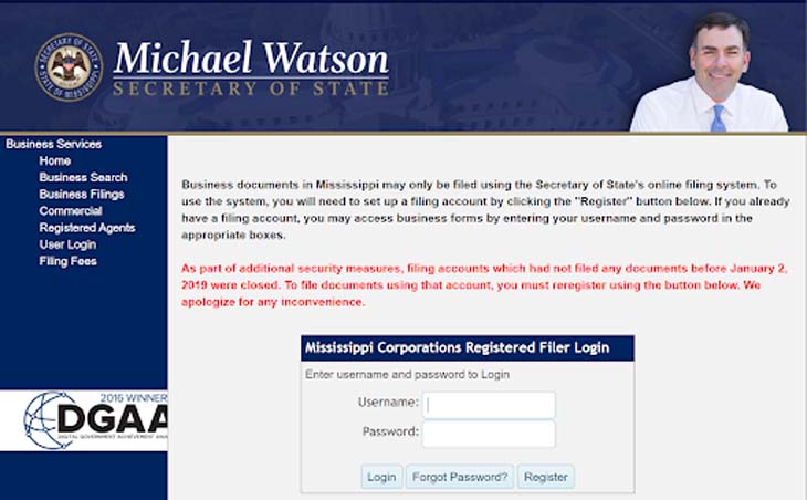 You can form your LLC online by creating an account through the Mississippi Secretary of State website. You’ll gain access to all the resources you need to appoint a registered agent and form your LLC online. A $50 filing fee will be required.