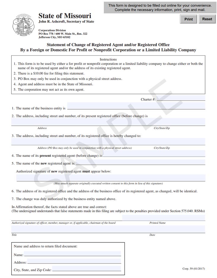 See our How Do I Change My Registered Agent in Missouri article for more information.