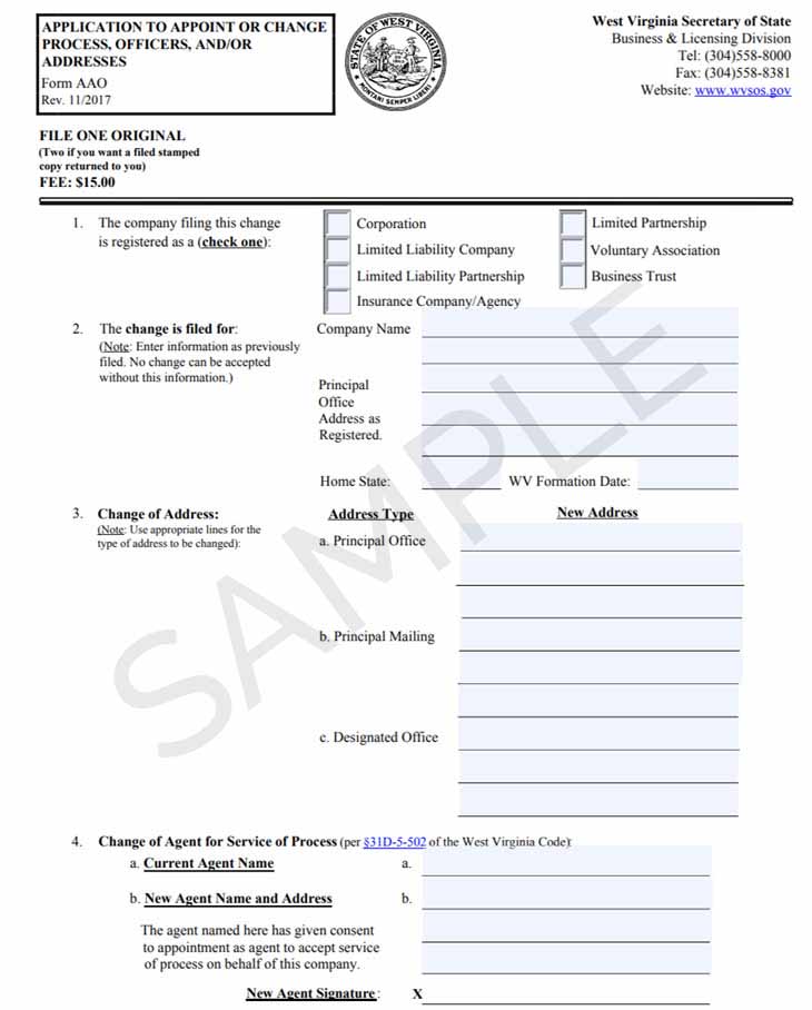 LLCs are required to appoint an agent of process — also known as a West Virginia registered agent — to accept service of process.
