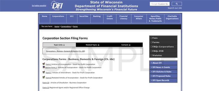You can form your LLC online at the Wisconsin Department of Financial Institutions website ($130 filing fee required). The online form will ask you to provide some essential information about your LLC, including the name and address of your registered agent.